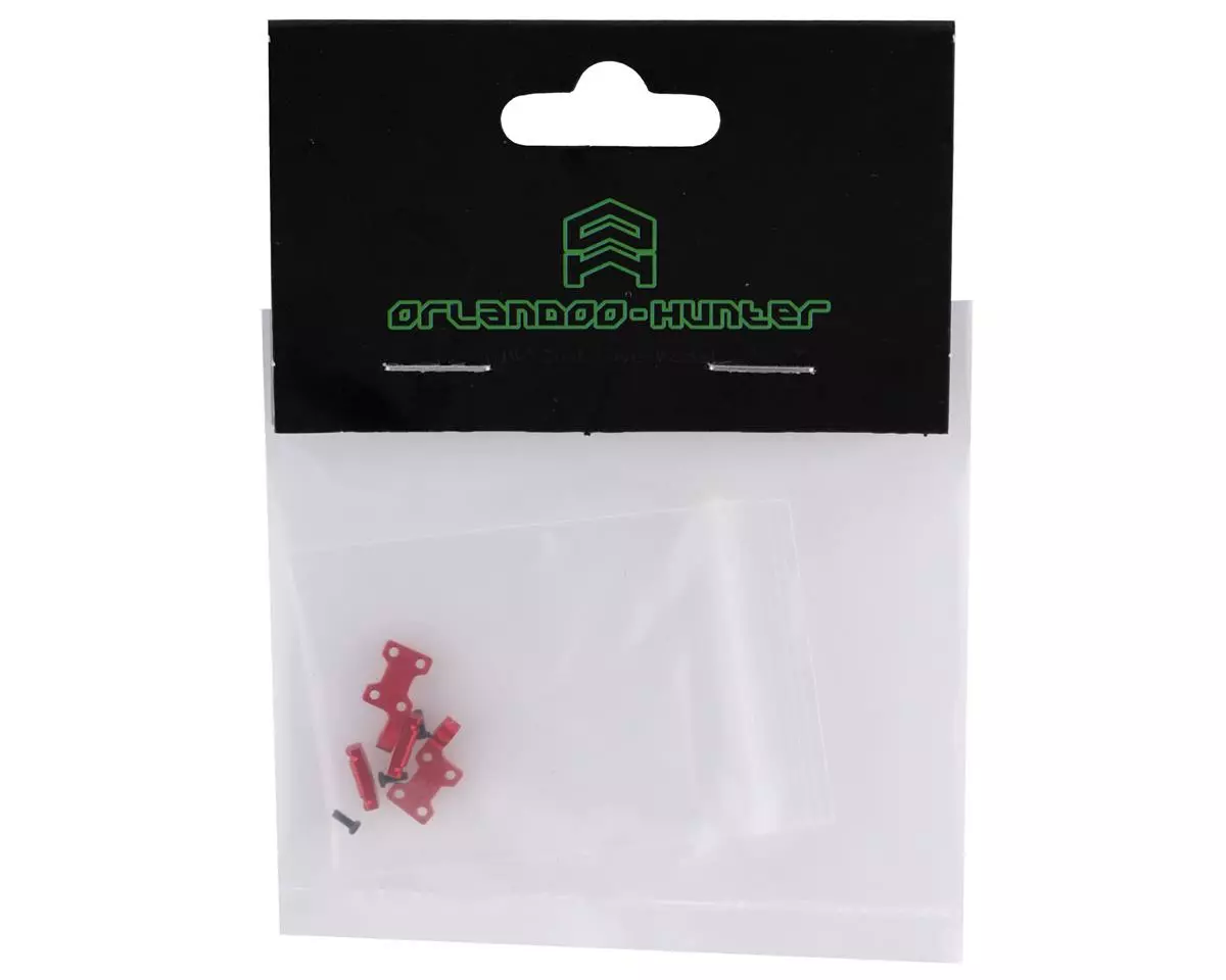 The Orlandoo Hunter 32M01 Metal Leaf Spring Fixing Accessories is a machined alloy upgrade for the 32M01 series. These parts will help to add a custom look, strength and rigidity to the front or rear leaf spring assembly. Available in a red or black anodized finish. Package includes optional leaf spring/lower shock mount assembly and hardware.Â