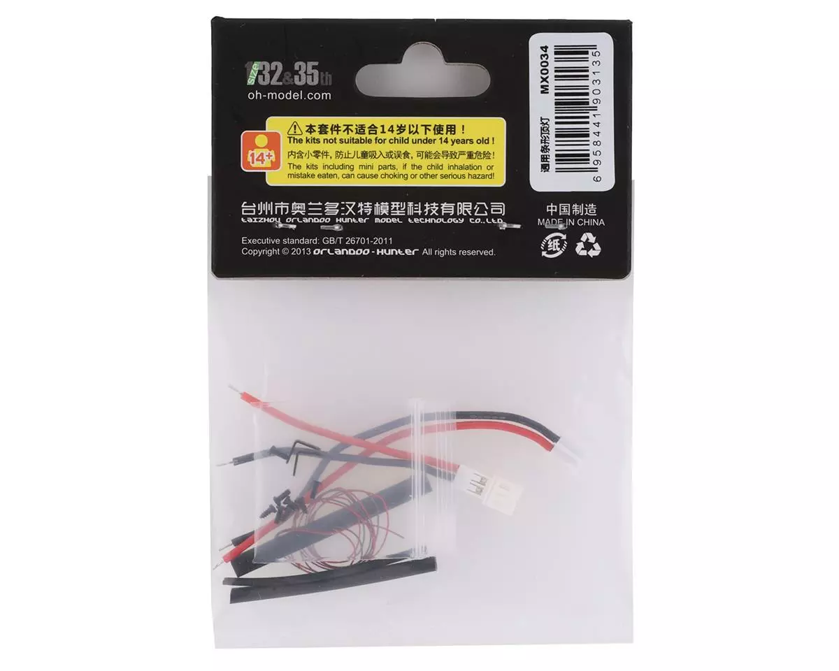 Orlandoo Hunter 1/32 Universal Lightbar. This mini 3V lightbar is an optional accessory intended for Orlandoo Hunter models. The lightbar comes prewired with two PH2.0 connectors to be soldered in for power. Package includes one lightbar, two pieces of heat shrink, two PH2.0 pigtails, two brackets and hardware.