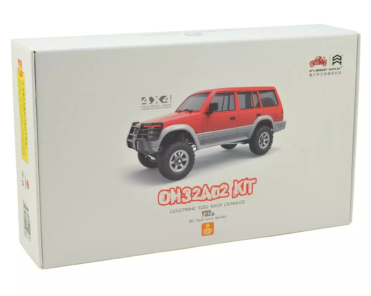 The Orlandoo OH35A02 1/32 Micro Crawler Kit is an incredibly capable micro size scaler. This cellphone sized kit includes a highly detailed Mitsubishi Pajero hard plastic body, super soft scale tires, scale axles and six spoke mag wheels. But don’t let the micro size fool you! This little crawler is equipped with four-link suspension, friction shocks on all four corners and enough axle articulation to make this tiny truck a true performer. This kit shares many parts with the the 35A01 Jeep Wrangler, but compared to the Jeep this kit offers up 10mm longer wheelbase and 2mm wider track width.