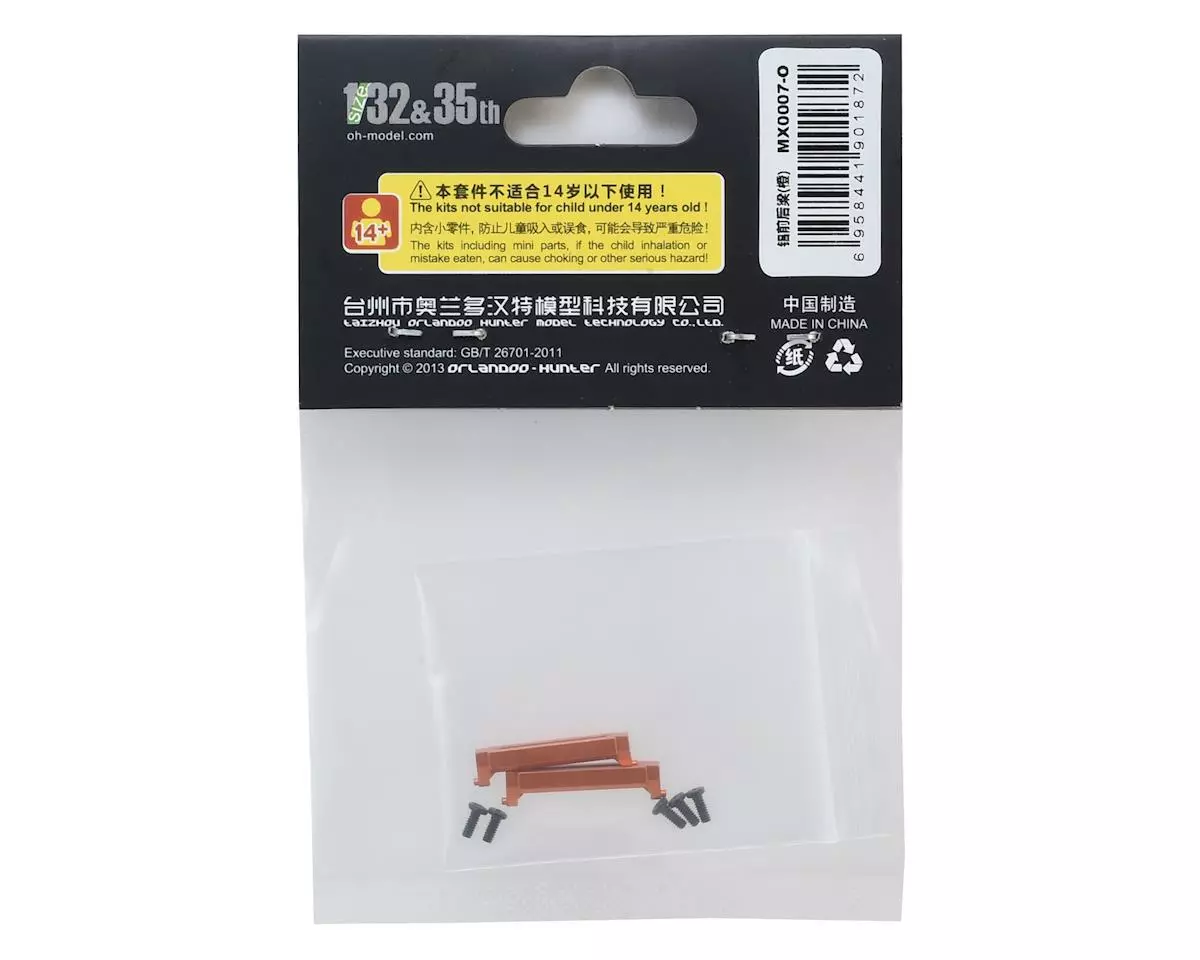 The Orlandoo Hunter OH32A02 Aluminum Frame Accessories are an optional upgrade for your 32A02 Pajero. These chassis braces will improve strength, while increasing the amount of low hung weight in the chassis. The braces are available in a silver, orange or red finish to compliment the full line of aluminum Orlandoo upgrades. Package includes one front brace, one rear brace and installation hardware.