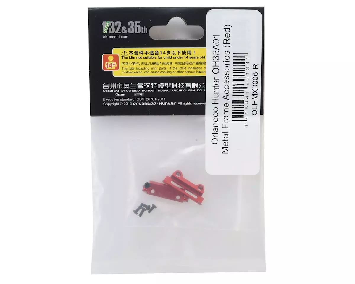 The Orlandoo Hunter OH35A01 Aluminum Frame Accessories are an optional upgrade for your 35A01 Jeep. These chassis braces will improve strength, while increasing the amount of low hung weight in the chassis. The braces are available in a silver, orange or red finish to compliment the full line of aluminum Orlandoo upgrades. Package includes one front brace, one rear brace and installation hardware.